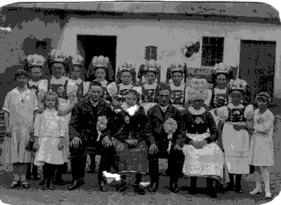 Hochzeiten, je nach Verwandtschaft, verschönerten auch "Brautjungfern aus der Stodt" mit ihren weißen Kleidern und einem grünen Myrtenkränzchen im Haar das Fest.